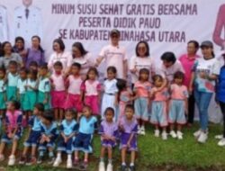 Newslestari.com – Bupati Minahasa Utara menyampaikan langkah-langkah konkret melalui kegiatan minum susu gratis bersama peserta didik Pendidikan Anak Usia Dini (PAUD) se-Kabupaten Minahasa Utara. Kegiatan ini bertujuan untuk mendorong kebiasaan hidup sehat sejak dini dan memastikan nutrisi yang cukup bagi generasi muda. Bertempat di lapangan Pemkab minut. Rabu, (8/10/2025).