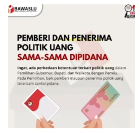 Mokodompit: Tolak Politik Uang Pemberi dan Penerima Teracam Pidana Juent Mongkaren, Oktober 3, 2024Desember 5, 2024 Newsletari.com – MINUT, Berkenaan dengan politik uang, dalam Pemilihan serentak 2024, sesuai ketentuannya bahwa pemberi dan penerima politik uang sama sama terancam sanksi. Hal ditegaskan Koordinator Divisi Penanganan Pelanggaran dan Penyelesaian Sengketa Bawaslu Minahasa Utara, Waldi Mokodompit, Kamis (3/10/2024). Menurut mokodompit, ketentuan larangan politik uang pada pemilihan ada pada Pasal 73 ayat (4) UU Nomor 10 Tahun 2016. ” Selain Calon atau Pasangan Calon, anggota Partai Politik, tim kampanye, dan relawan, atau pihak lain juga dilarang dengan sengaja melakukan perbuatan melawan hukum menjanjikan atau memberikan uang atau materi lainnya sebagai imbalan kepada warga negara Indonesia baik secara langsung ataupun tidak langsung untuk Mempengaruhi Pemilih untuk tidak menggunakan hak pilih, Menggunakan hak pilih dengan cara tertentu sehingga mengakibatkan suara tidak sah dan Mempengaruhi untuk memilih calon tertentu atau tidak memilih calon tertentu,” ungkap Mokodompit. Sementara itu terkait ketentuan sanksi politik uang pada pemilihan ada pada Pasal 187A UU Nomor 10 Tahun 2016 : (1) Setiap orang yang dengan sengaja melakukan perbuatan melawan hukum menjanjikan atau memberikan uang atau materi lainnya sebagai imbalan kepada warga negara Indonesia baik secara langsung ataupun tidak langsung untuk mempengaruhi Pemilih agar tidak menggunakan hak pilih, menggunakan hak pilih dengan cara tertentu sehingga suara menjadi tidak sah, memilih calon tertentu, atau tidak memilih calon tertentu sebagaimana dimaksud pada Pasal 73 ayat (4) dipidana dengan pidana penjara paling singkat 36 bulan dan paling lama 72 bulan dan denda paling sedikit Rp200 juta dan paling banyak Rp1 milyar. (2) Pidana yang sama diterapkan kepada pemilih yang dengan sengaja melakukan perbuatan melawan hukum menerima pemberian atau janji sebagaimana dimaksud pada ayat (1) (**) Agenda Minahasa utara Nasional