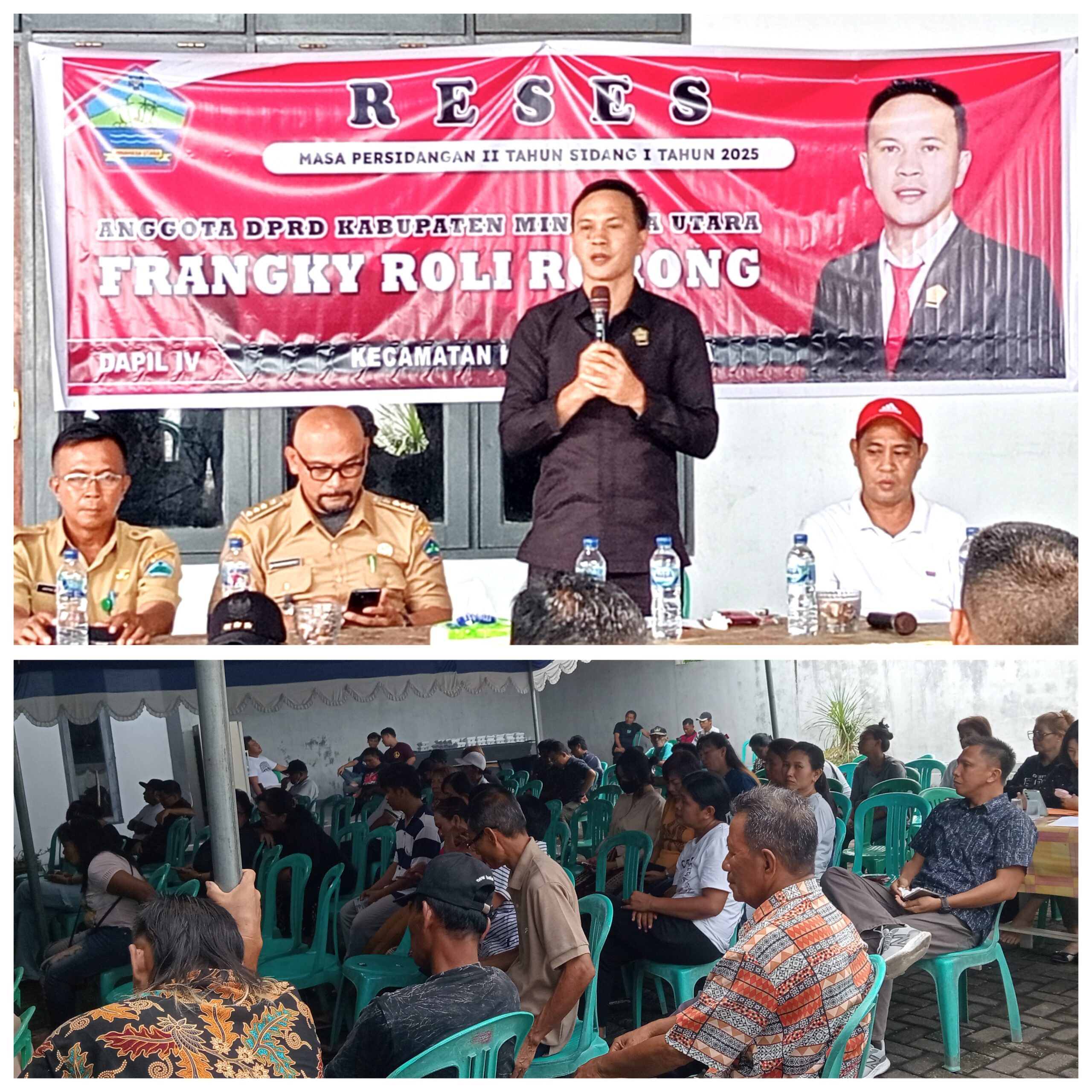 Newslestari.com – Minut, Dengan semangat muda, energi, dan penuh inovasi, Anggota DPRD Kabupaten Minahasa Utara dari Daerah Pemilihan (Dapil) IV Kauditan-Kema, Frangky Roli Rorong (FRR), menggelar reses masa persidangan II tahun sidang I 2025 di Desa Kema Satu, Kecamatan Kema pada sabtu (26/04/2025).