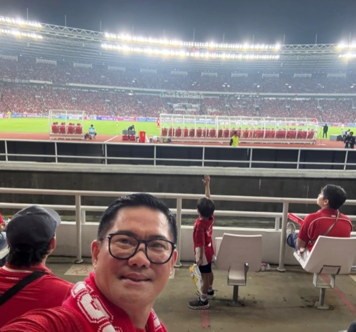Ketua Asprov PSSI Sulut, Joune Ganda, Saksikan Langsung Kemenangan Indonesia atas China 1-0 Juent Mongkaren, Juni 5, 2025Juni 5, 2025 Newslestari.com – Jakarta, 6 Juni 2025 Semangat nasionalisme kembali ditunjukkan oleh Ketua Asprov PSSI Sulawesi Utara sekaligus Bupati Minahasa Utara, Joune J.E. Ganda, yang hadir langsung di Stadion Gelora Bung Karno (GBK), Jakarta, pada 05 Juni 2025 untuk memberikan dukungan moril kepada Tim Nasional Indonesia saat menjamu China dalam laga penting Kualifikasi Piala Dunia 2026. Dalam laga yang berlangsung sengit dan penuh tekanan, Indonesia berhasil menumbangkan China dengan skor tipis namun berharga 1-0. Sorak-sorai ribuan suporter di GBK terasa makin lengkap dengan kehadiran pemimpin daerah seperti Joune Ganda yang menunjukkan komitmennya terhadap kemajuan sepak bola nasional. Kehadiran beliau bukan hanya sebagai bentuk dukungan simbolik, tetapi juga perwujudan nyata dari tanggung jawab sebagai Ketua Asprov PSSI Sulut dalam membangun sepak bola dari daerah, sekaligus mendorong kemajuan sepak bola Indonesia secara menyeluruh. Kemenangan atas China ini bukan hanya kemenangan teknis, melainkan kemenangan semangat, dedikasi, dan kebersamaan. Indonesia melaju, Selanjutnya Indonesia akan berhadapan dengan Bahrain jika menang Indonesia di pastikan berpeluang untuk lolos Piala dunia 2026. (Rinte Klabat) Agenda Minahasa utara Nasional