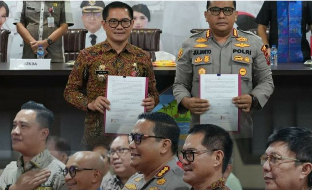 Pemkab Minahasa Utara Tandatangani NPHD dengan Polresta Manado untuk Pengamanan Pilkada 2024 admin, Mei 31, 2024Juni 1, 2024 Newslestari.com – Minahasa Utara, Pemerintah Kabupaten Minahasa Utara (Pemkab Minut) menandatangani Naskah Perjanjian Hibah Daerah (NPHD) dengan Kepolisian Resort Kota (Polresta) Manado dalam sebuah acara yang berlangsung di Ruang Rapat Bupati pada Jumat (31/05/2024). Dalam sambutannya, Bupati Minut Joune Ganda menekankan pentingnya dukungan terhadap penyelenggaraan pemilihan Bupati dan Wakil Bupati Minahasa Utara Tahun 2024, yang merupakan agenda strategis nasional. “Mari kita dukung Penyelenggaraan Pilkada 2024. Pemerintah Minut telah mengalokasikan Anggaran Dana Pengamanan sebesar Rp. 4 Miliar dari APBD Pemerintah Kabupaten Minut Tahun 2024 untuk dihibahkan kepada pihak Kepolisian dan TNI, yaitu Polres Minut, KODIM 1310 Bitung, Polresta Manado, KODIM 1309/Manado dan LANUDAL Manado. Dan saat ini sudah dituangkan dalam SK Bupati Minahasa Utara No.82 Tahun 2024, tentang Hibah untuk Pengamanan Pemilihan Bupati dan Wakil Bupati Tahun 2024,” ungkap Joune. Bupati juga berharap agar Pemda Minut bersama pihak TNI dan POLRI, serta KPU dan BAWASLU selaku penyelenggara pemilu terus bersinergi, berkolaborasi, dan bekerja sama dalam pelaksanaan pemilihan, sehingga semua tahapan dapat terselenggara dengan aman, tertib, dan lancar. Acara ini diakhiri dengan penandatanganan hibah oleh Bupati dan Kapolresta Manado, serta sesi foto bersama. Hadir dalam acara tersebut adalah Bupati Minahasa Utara Joune J. E. Ganda, S.E., M.A.P. M.M., M.Si, Sekda Minut Ir. Novly G.W. Wowiling, M.Si., Kapolresta Manado Kombes Julianto Sirait, SIK, MH, Kapolres Minut AKBP Dandung Putut Wibowo, SIK, SH, MH, Ketua KPU Hendra Lumanauw, MA, Ketua BAWASLU Rocky Ambar, SH, LLM, MKN, jajaran pemerintahan Kab. Minut, dan insan pers. (*/Juent Myhard) Agenda Minahasa utara Nasional