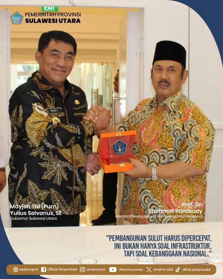 Newslestari.com – Jakarta, 28 April 2025  Pemerintah Provinsi Sulawesi Utara yang dipimpin langsung oleh Gubernur Yulius Selvanus Komaling, didampingi para Kepala SKPD terkait, menghadiri pertemuan strategis dengan Menteri Perencanaan Pembangunan Nasional/Kepala Bappenas RI, Prof. Dr. Rachmat Pambudy di Kantor Bappenas, Jakarta.